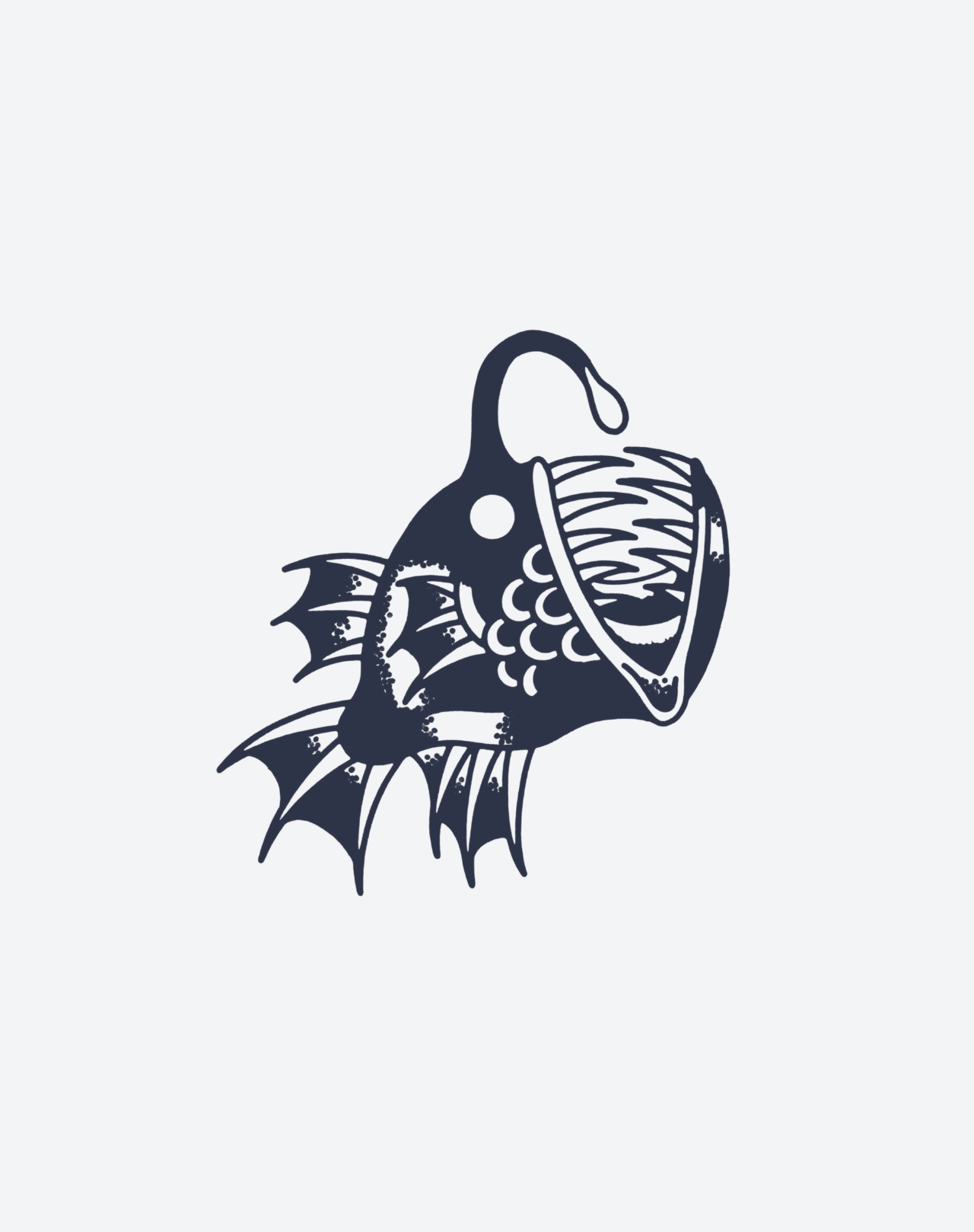 Ang-lure is a bold 4x4 inch blackwork design of an anglerfish, glowing with menace and mystery from the deep. Created by @quentin_tattoorino, this EZINK temporary tattoo lasts 1-2 weeks, channeling the eerie allure of what lurks below the surface.