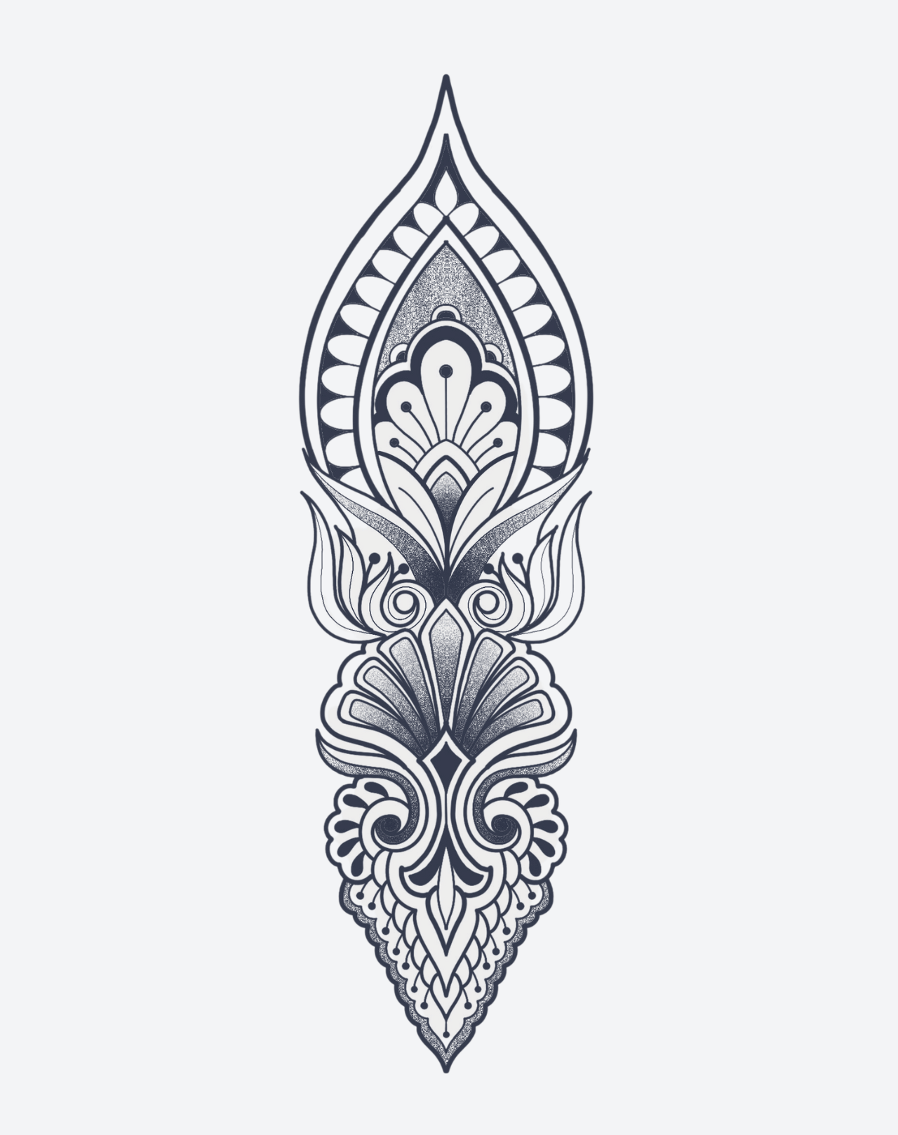 Balanced Soul is a harmonious 5.5 x 9 inch design featuring an intricate mandala with ornamental layering and fine dotwork shading, echoing sacred patterns and symmetrical flow. Created by @lil_skiins, this EZINK temporary tattoo lasts 1–2 weeks, inviting stillness, balance, and a connection to inner clarity through ornamental elegance.
