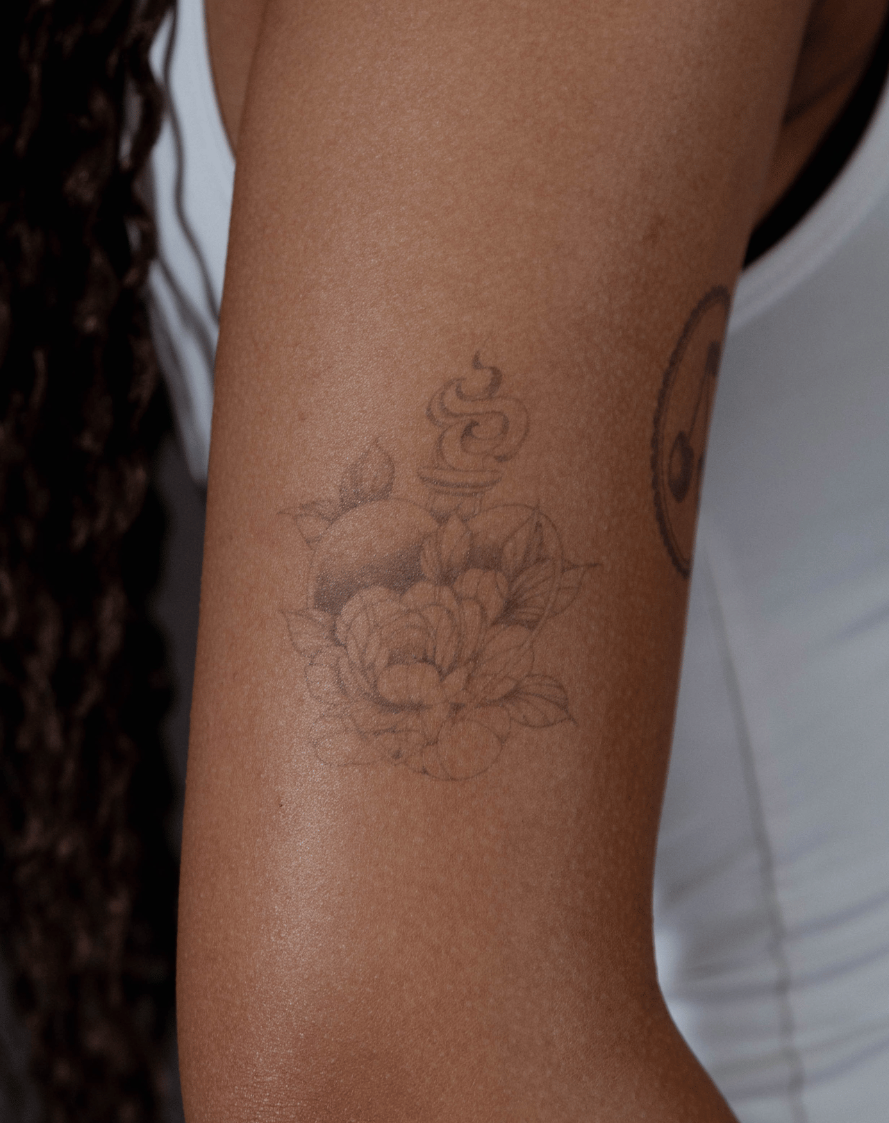 Blazing Bloom is a 4x4 inch design by @shelltatts that entwines elegance and intensity in one striking image. A radiant camellia blossoms around a stylized flame and orb, its petals curling gently around the smoldering centerpiece. Symbolic of passion, transformation, and inner fire, this tattoo evokes quiet strength and bold femininity. Delivered as a 1–2 week EZINK temporary tattoo.