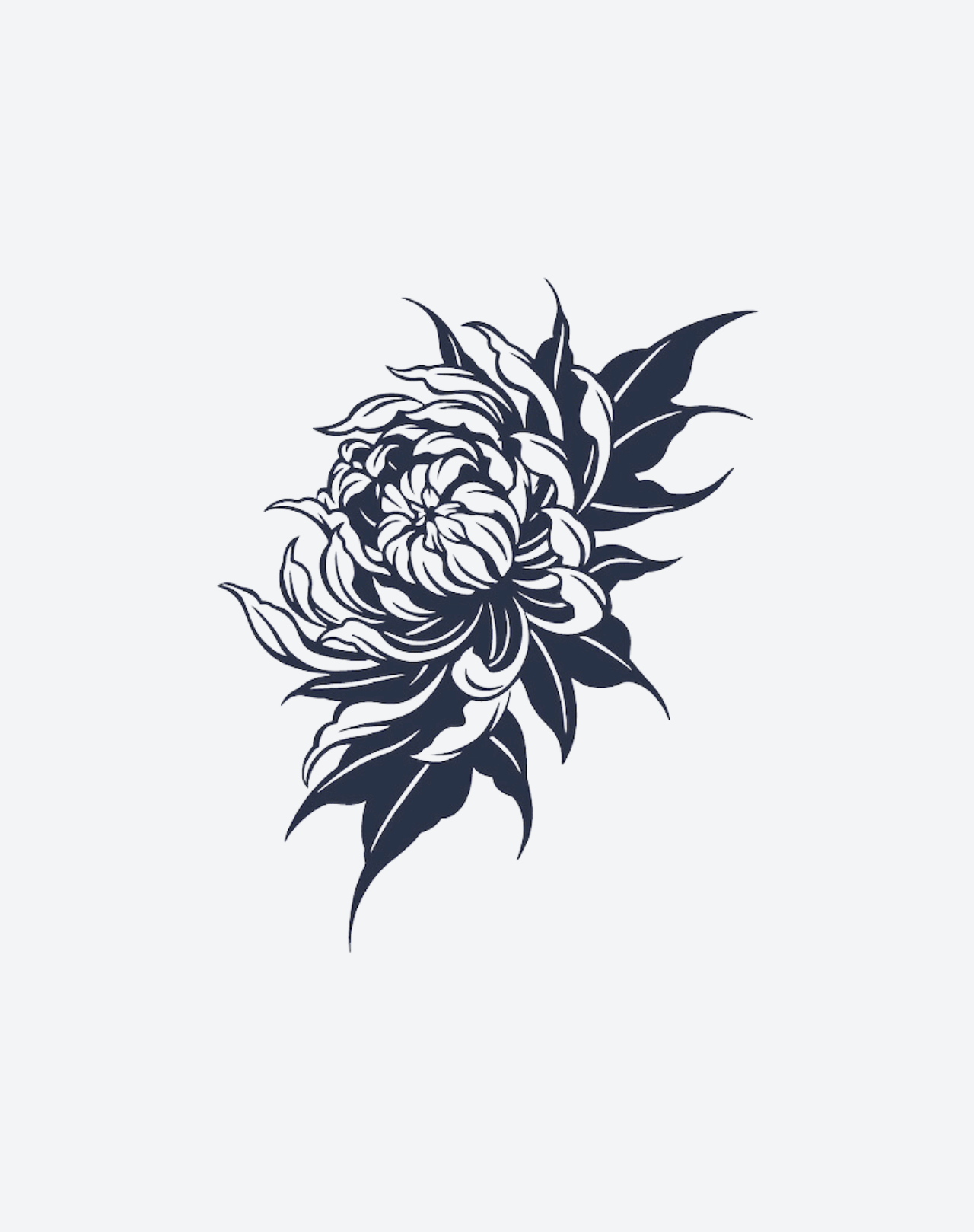 Indulge in the beauty and symbolic meaning of the Chrysanthemum with our Blooming Chrysanthemum temporary tattoo! Measuring 2x3 inches and lasting 1-2 weeks, this EZINK design by mahlo_tattoo will add a touch of elegance to any look. Perfect for self-expression and personal growth.