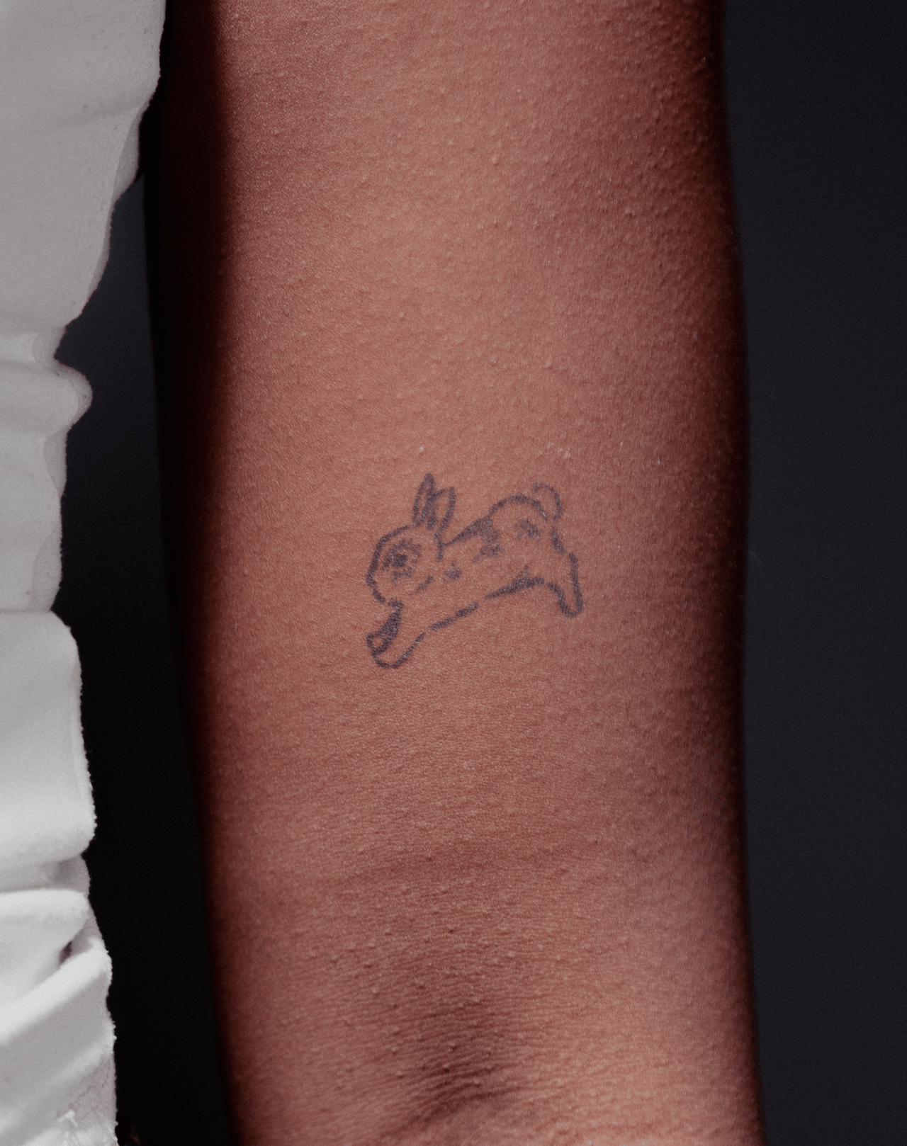 Bunny Hop is a charming 2x2 inch design of a bounding rabbit captured mid-leap, rendered in a soft stipple style that feels both playful and nostalgic. Created by @artishandpoke, this EZINK temporary tattoo lasts 1–2 weeks, perfect for those drawn to gentle motion, innocence, and a touch of woodland whimsy.