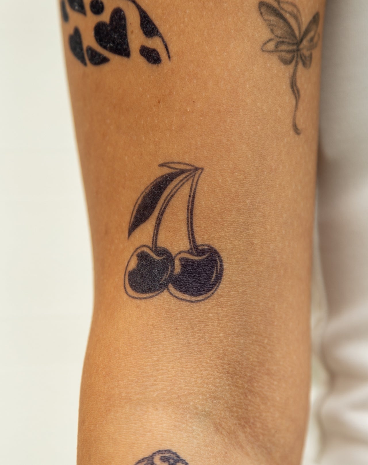 Unleash your juicy side with our 2x2 inch patchwork cherry temporary tattoo! Lasting 1-2 weeks, its realistic design will have everyone craving for a bite. Skip the needle and pain, but not the style!