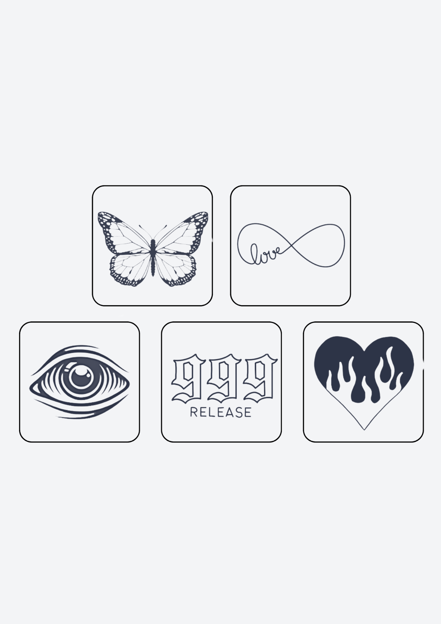 Be uniquely stylish with these five semi-permanent tattoos! All sized 2x2 inches, these cute tattoos are perfect for adding a touch of personality to your style. Show off your creative side with a single pack of Cute Small Packs.