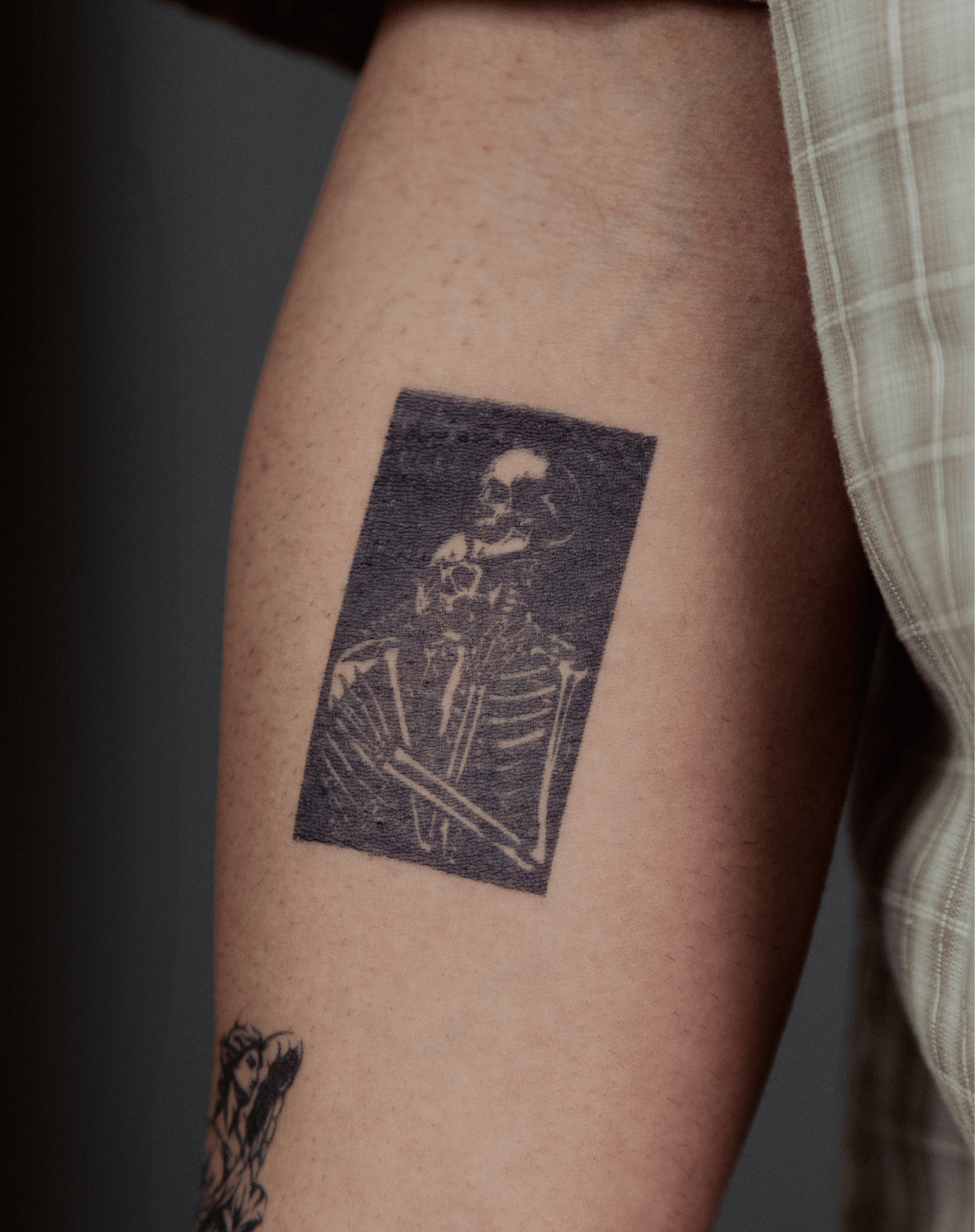 Deadlock Embrace is a striking 2x4 inch design featuring two skeletons locked in a tight embrace, symbolizing an eternal connection beyond life. Created by @vladbaut, this EZINK temporary tattoo lasts 1-2 weeks, perfect for those who embrace the darker side of love and the unbreakable bond that death cannot sever. A reminder that even in death, we are bound together.