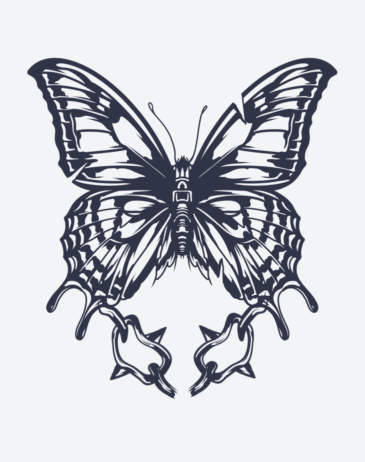 The Death’s Chain EZINK temporary tattoo pack, featuring three designs created by @vladbaut, includes a sword with a butterfly resting on its blade, a butterfly with broken chains dangling from its wings, and a skull-shaped milk carton. Blending delicate symbols with dark twists, this pack lasts 1-2 weeks—perfect for those who find beauty in the eerie and meaning in the surreal.