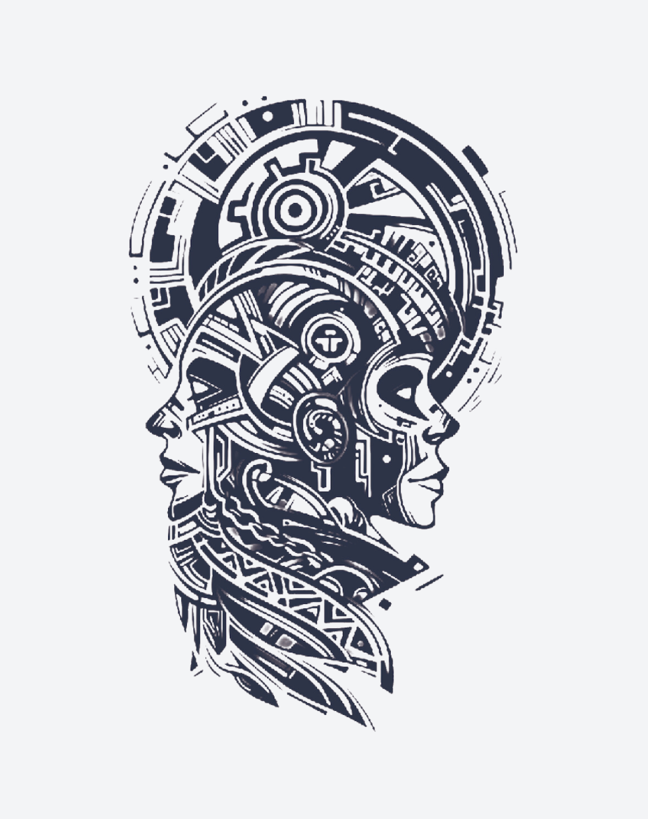 Transform your look with Dual Visage - a stunning, 4x7 inch temporary tattoo featuring a striking biometric design with two faces. Lasting 1-2 weeks, this realistic tattoo adds a touch of edginess and personality to any outfit.