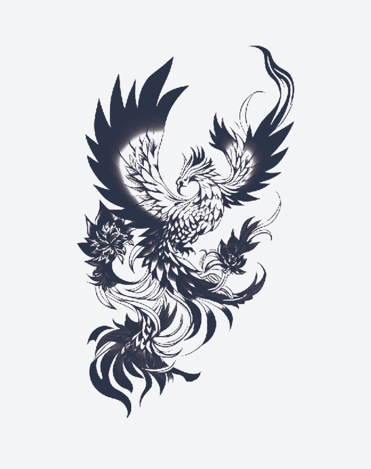 Transform your look with the Eternal Phoenix temporary tattoo! At 4x7 inches, this stunning phoenix design will catch everyone's eye. With a 1-2 week lifespan, you can showcase your fiery spirit without commitment.