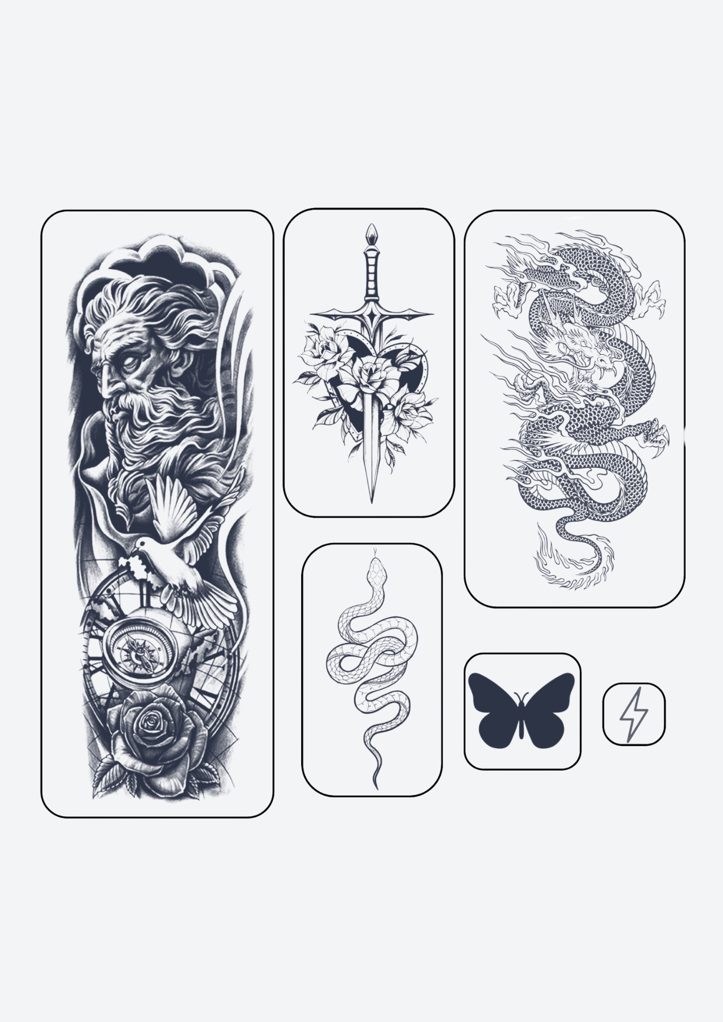Unlock your inner artist with the EZINK Starter Pack! This EZINK temporary tattoo kit includes 6 unique designs in various sizes, perfect for creating a personalized look. Express yourself and stand out with EZINK's bold and vibrant designs. Unleash your creativity now!