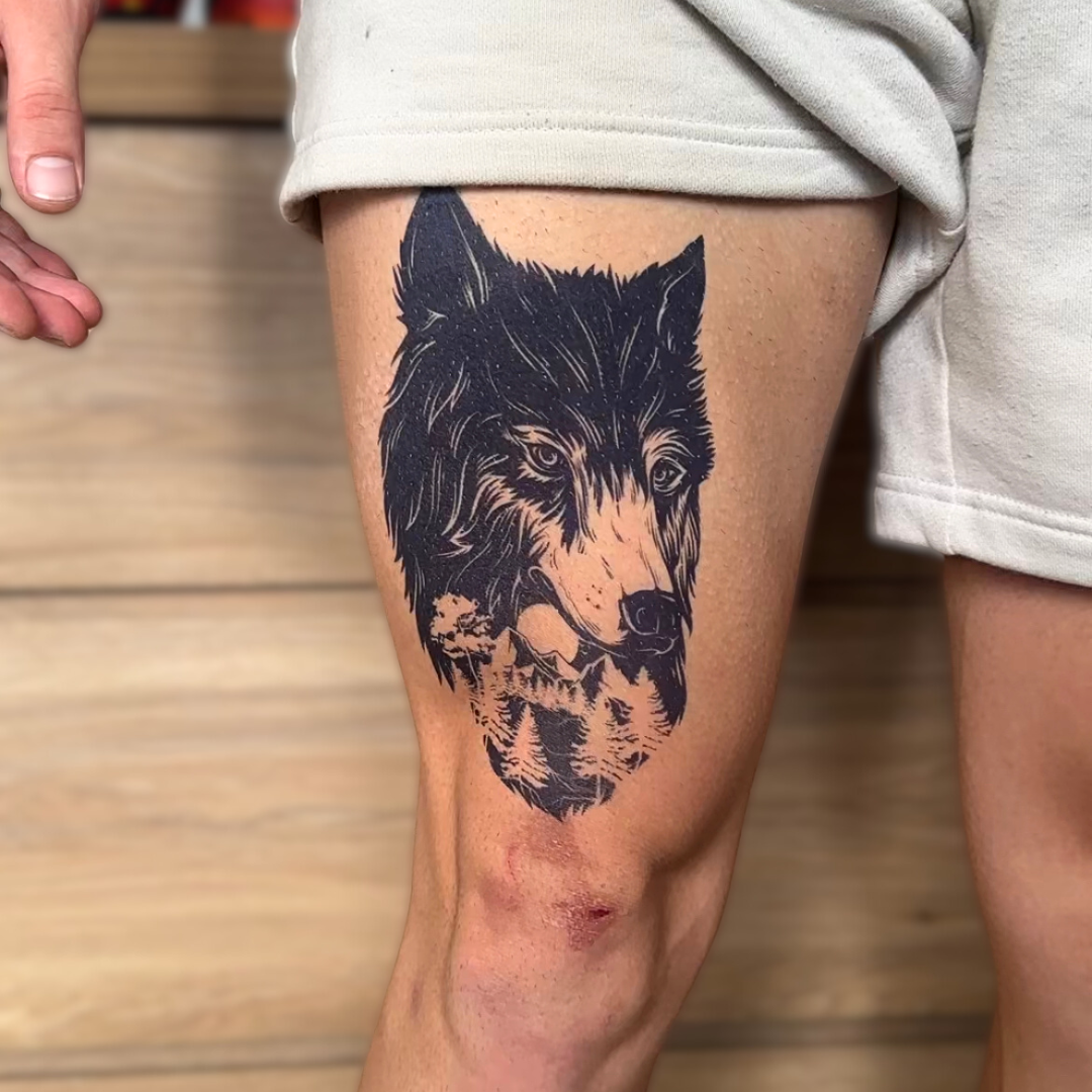 Wildly beautiful and effortlessly cool, Forest Night is the semi-permanent tattoo that's perfect for expressing your true self. Featuring a striking forest night wolf, this 5.5x9" 2-week tattoo gives you a fun and affordable way to experiment with different styles and placements before fully committing.