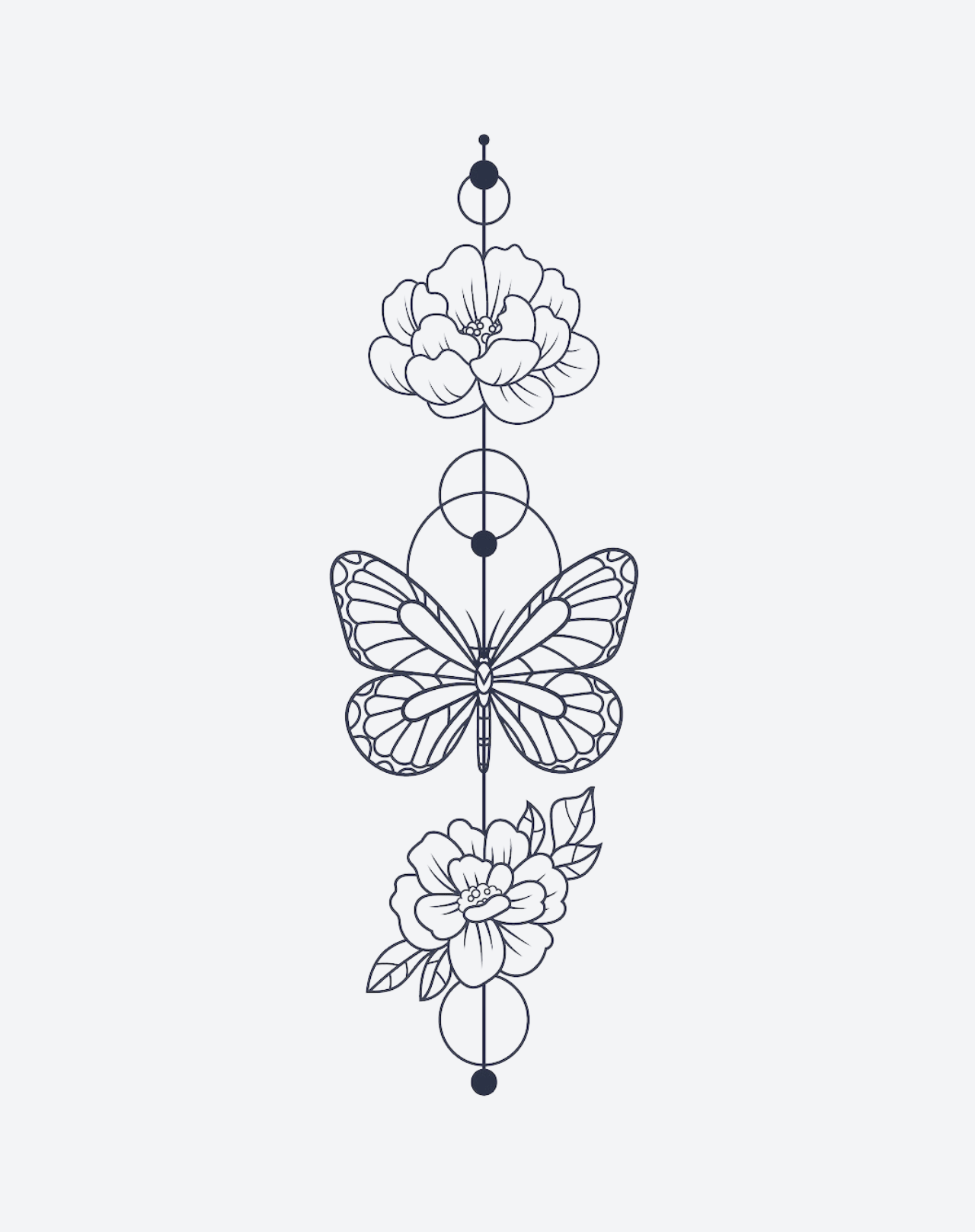 Experience delicate elegance with our Geometric Butterfly temporary tattoo! This enchanting 4x7-inch design features a fine-line butterfly and roses connected along a graceful line, symbolizing beauty and connection. Lasts 1-2 weeks, perfect for testing your romantic style before committing to a permanent tattoo.