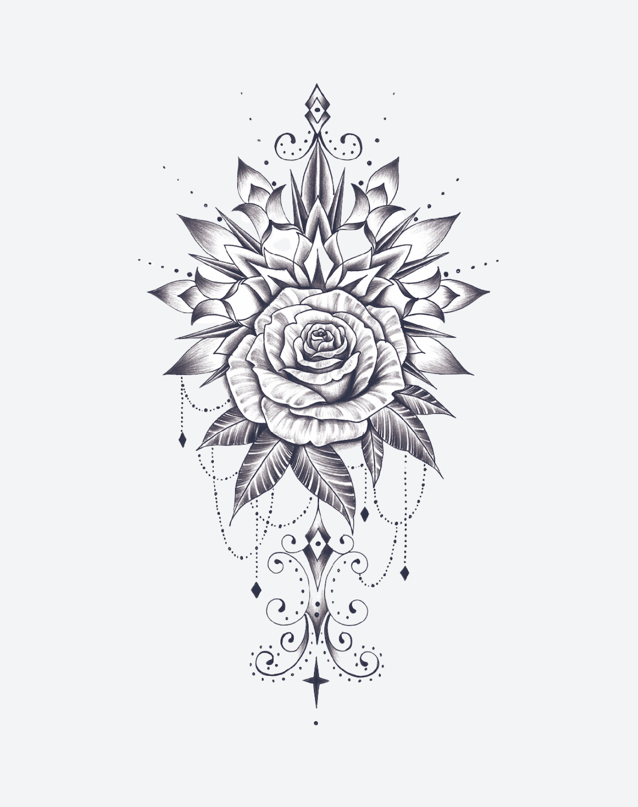 Embrace positive vibes with our Good Energy temporary tattoo! This enchanting 4x7-inch design features a delicate rose nestled inside an enchanted mandala pattern, symbolizing harmony and positivity. Lasts 1-2 weeks, perfect for testing your mystical style before committing to a permanent tattoo.