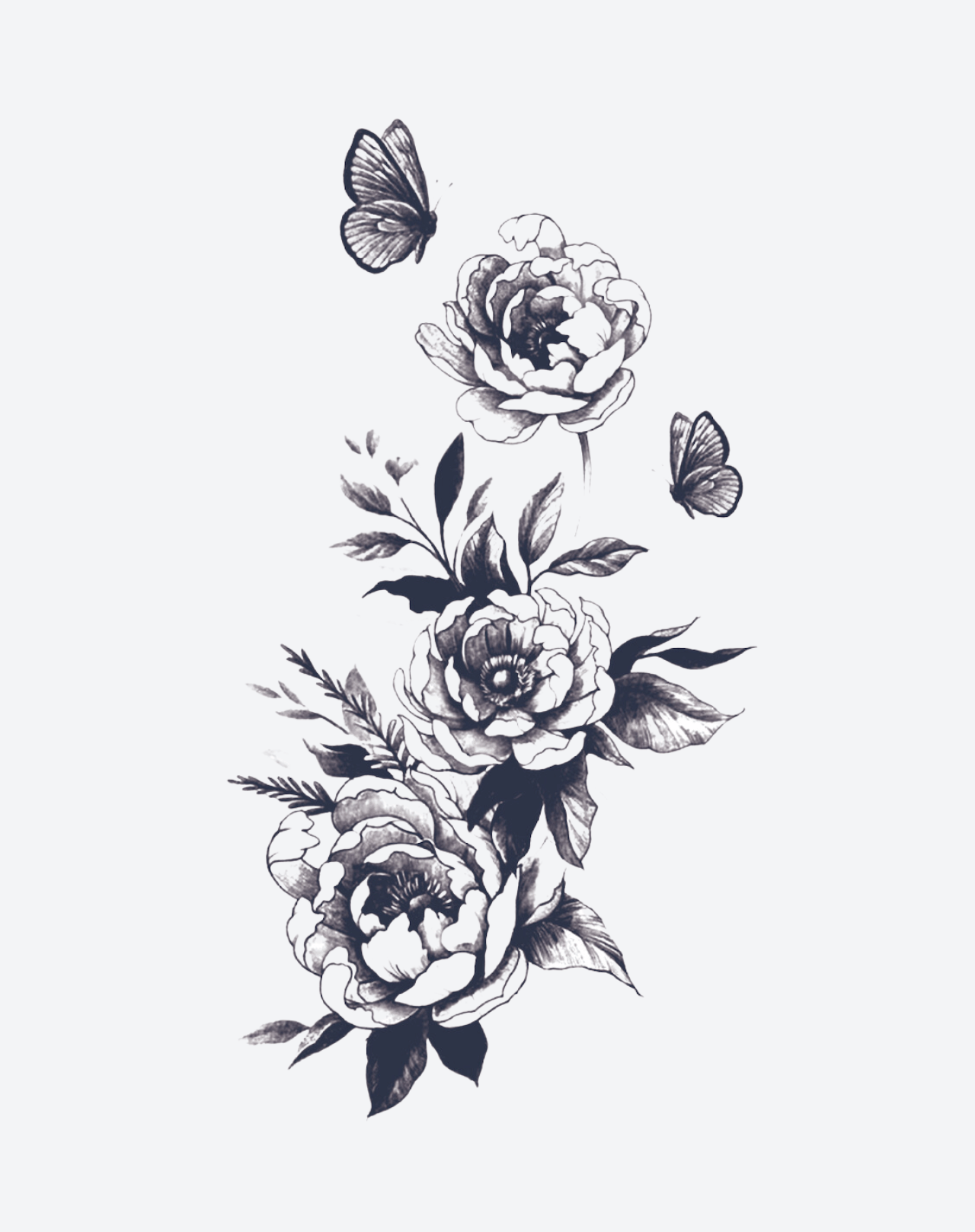 Celebrate beauty and transformation with our Graceful Bouquet temporary tattoo! This stunning 4x7-inch design features a collection of beautiful flowers adorned with two delicate butterflies, symbolizing elegance and change. Lasts 1-2 weeks, perfect for testing your romantic style before committing to a permanent tattoo.