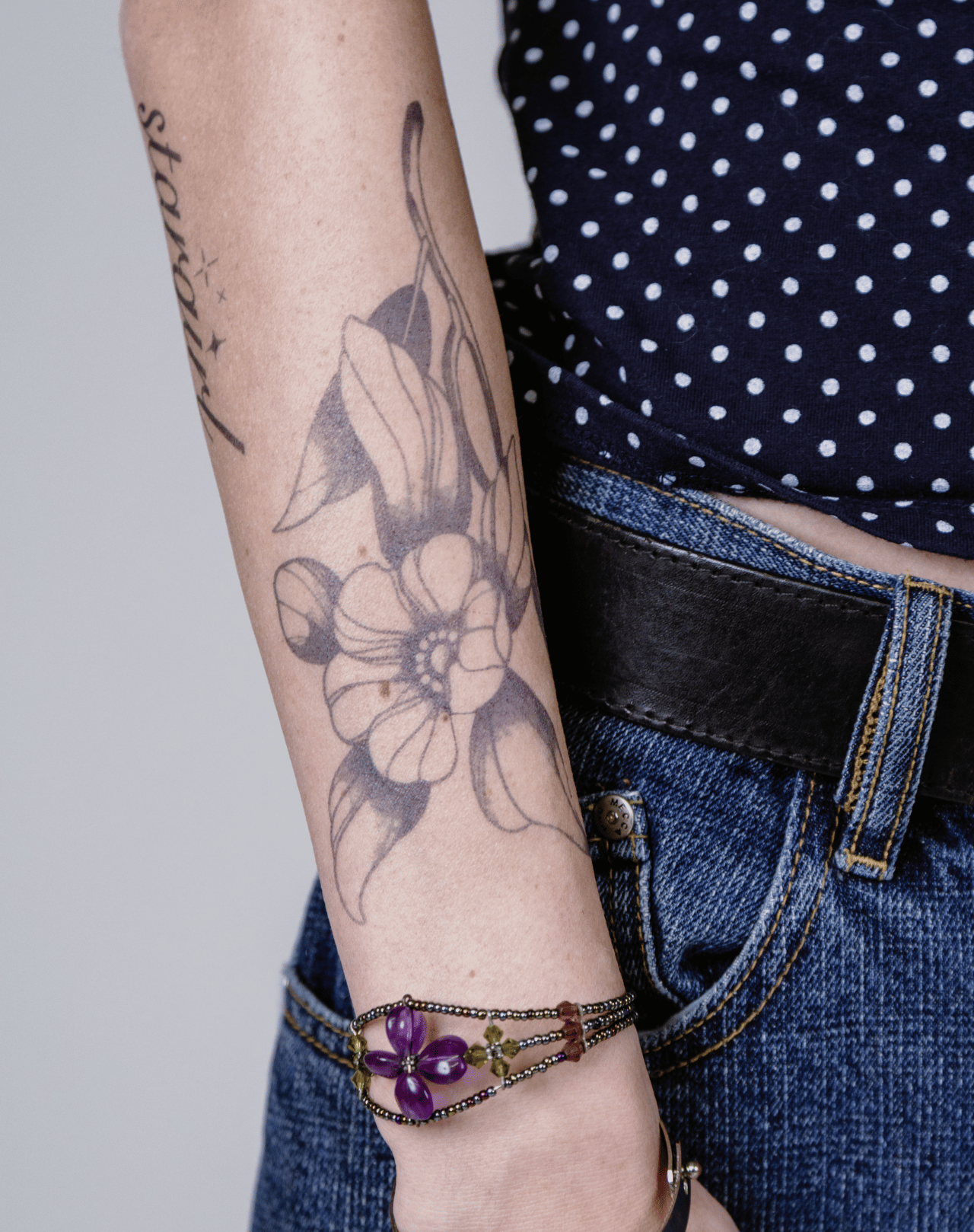 Honeysuckle is a 4x7 inch design by @shelltatts that captures the timeless grace of botanical illustration. A single bloom bursts forth amid long, winding leaves, its petals elegantly curled and detailed with delicate shading. A symbol of sweetness, nostalgia, and natural resilience—perfect for those who find strength in softness. Delivered as a 1–2 week EZINK temporary tattoo.