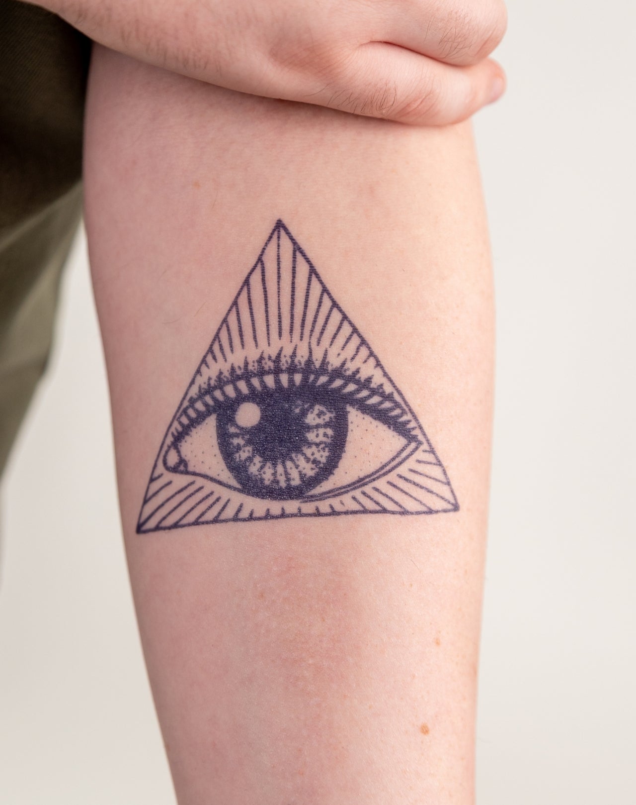 Unleash your inner mysticism with Illuminati! Our EZINK tattoo features a bold triangle and eye design, measuring 4x4 inches and lasting 1-2 weeks. Tap into the power of this symbolic tattoo for a touch of intrigue and mystery in your look. Dare to be different with Illuminati.