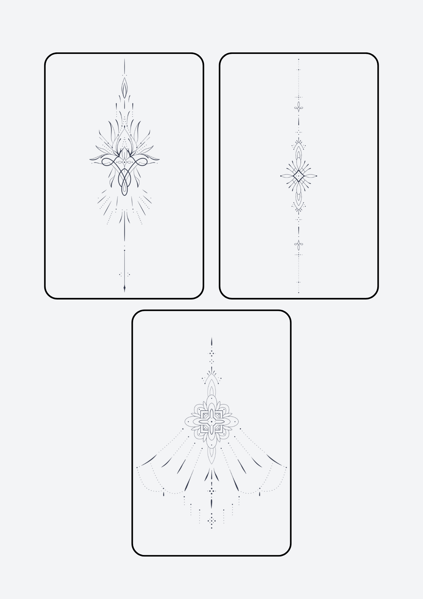 The Infinite Serenity EZINK temporary tattoo pack, featuring three designs created by @misskalitattoos, includes three 5.5x9 inch delicate sternum tattoos. Each piece blends fine line work with spiritual and geometric elements, creating a calming yet powerful visual statement. Lasting 1-2 weeks, this pack is perfect for those seeking balance, beauty, and a deeper connection through art.