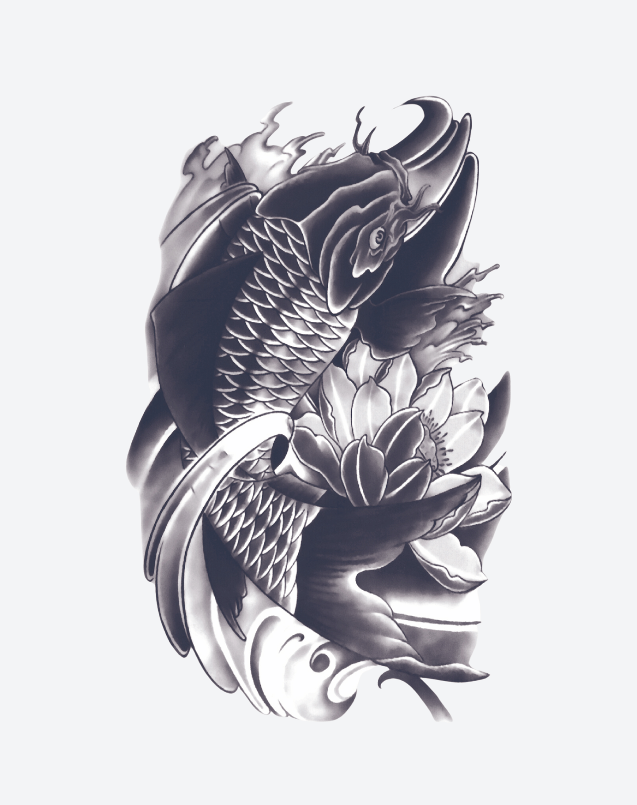 Embody tranquility with this beautiful 4x7 inch semi-permanent Koi Fish tattoo. With its exquisite details and up to 14 days of wear, you can proudly express your beauty and grace. Spread peacefulness with each step you take!