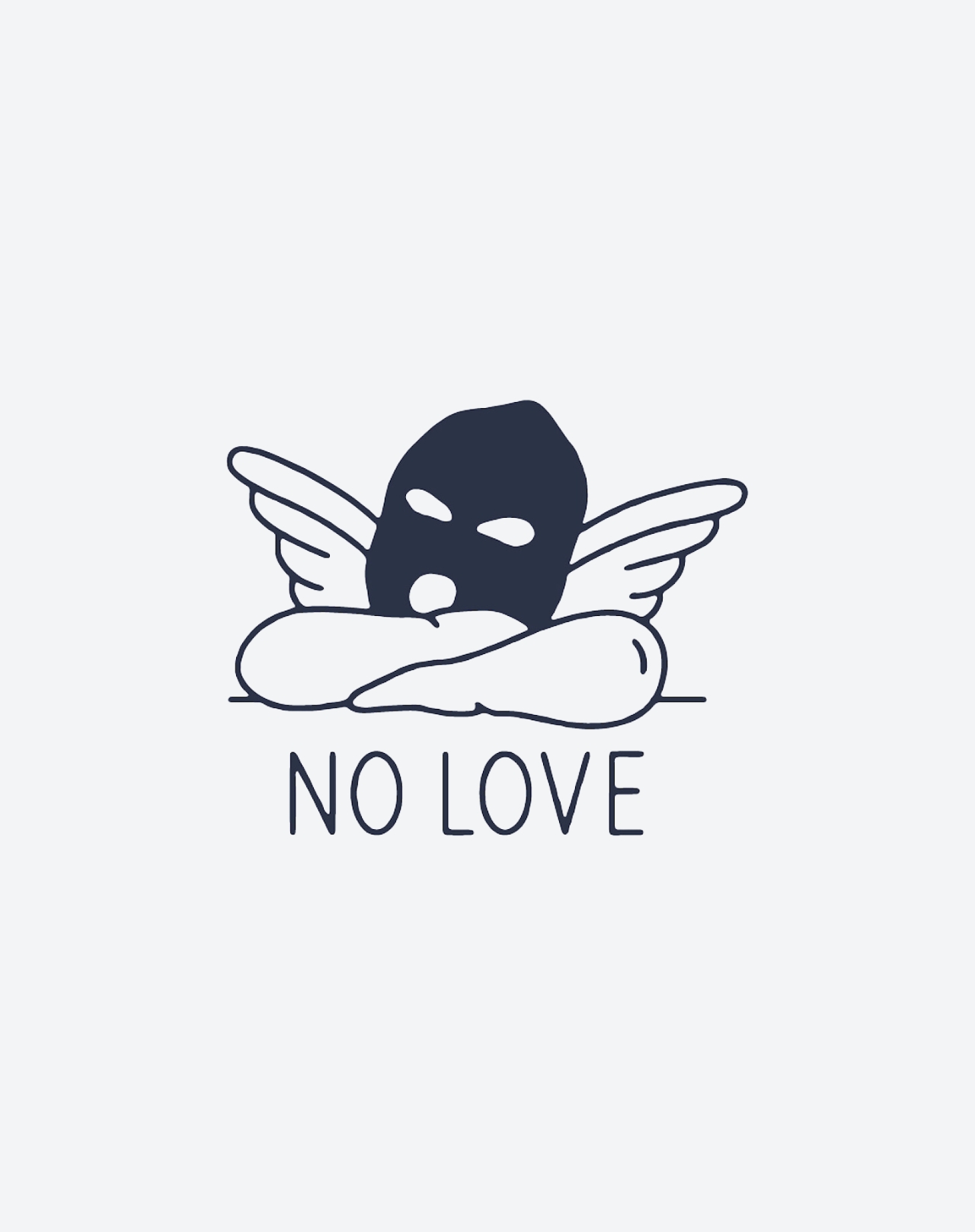 Transform your body into a work of art with No Love! This 2x2 inch patchwork angel tattoo, complete with a balaclava and the powerful quote "no love", will make a bold statement. Lasting 1-2 weeks and resembling a real tattoo, it's perfect for those who want to express their rebellious spirit. Be fearless and wear your heart on your sleeve with No Love.
