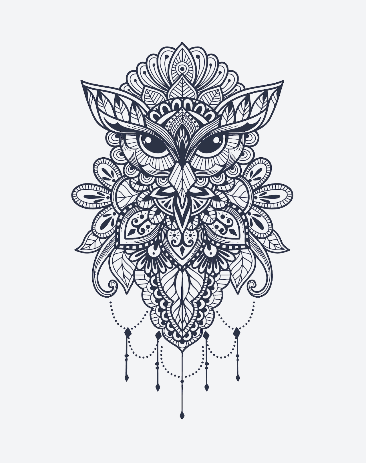 Illuminate your spirit with our Owl Mandala temporary tattoo! This mesmerising 4x7-inch design features an intricate mandala pattern adorned with owl motifs, symbolising wisdom and intuition. Lasts 1-2 weeks, perfect for testing your mystical style before committing to a permanent tattoo.