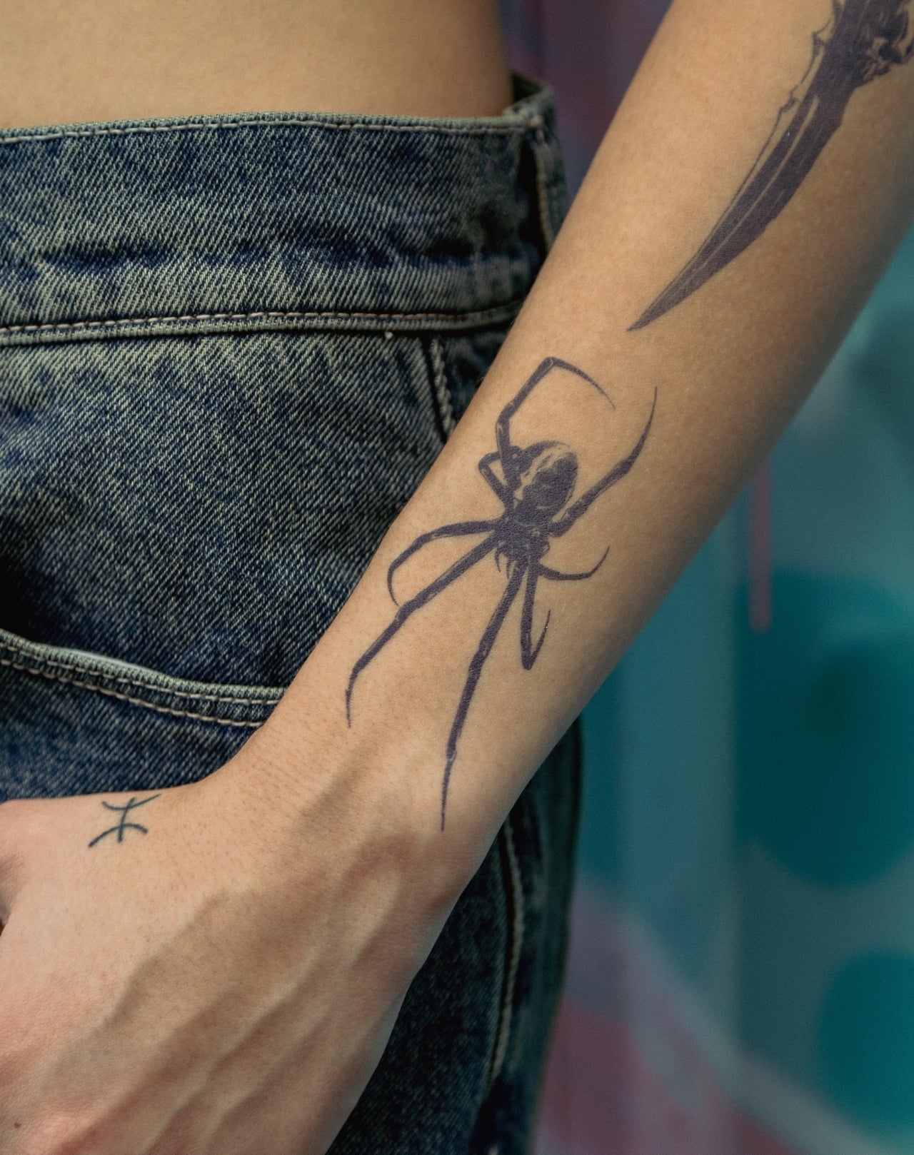 Unleash your inner arachnophile with Redback, the 2x4 inch EZINK temporary tattoo designed by @slippin.tattoo. Adorn your skin with a detailed spider design that lasts 1-2 weeks, making a bold statement wherever you go. Dare to stand out!