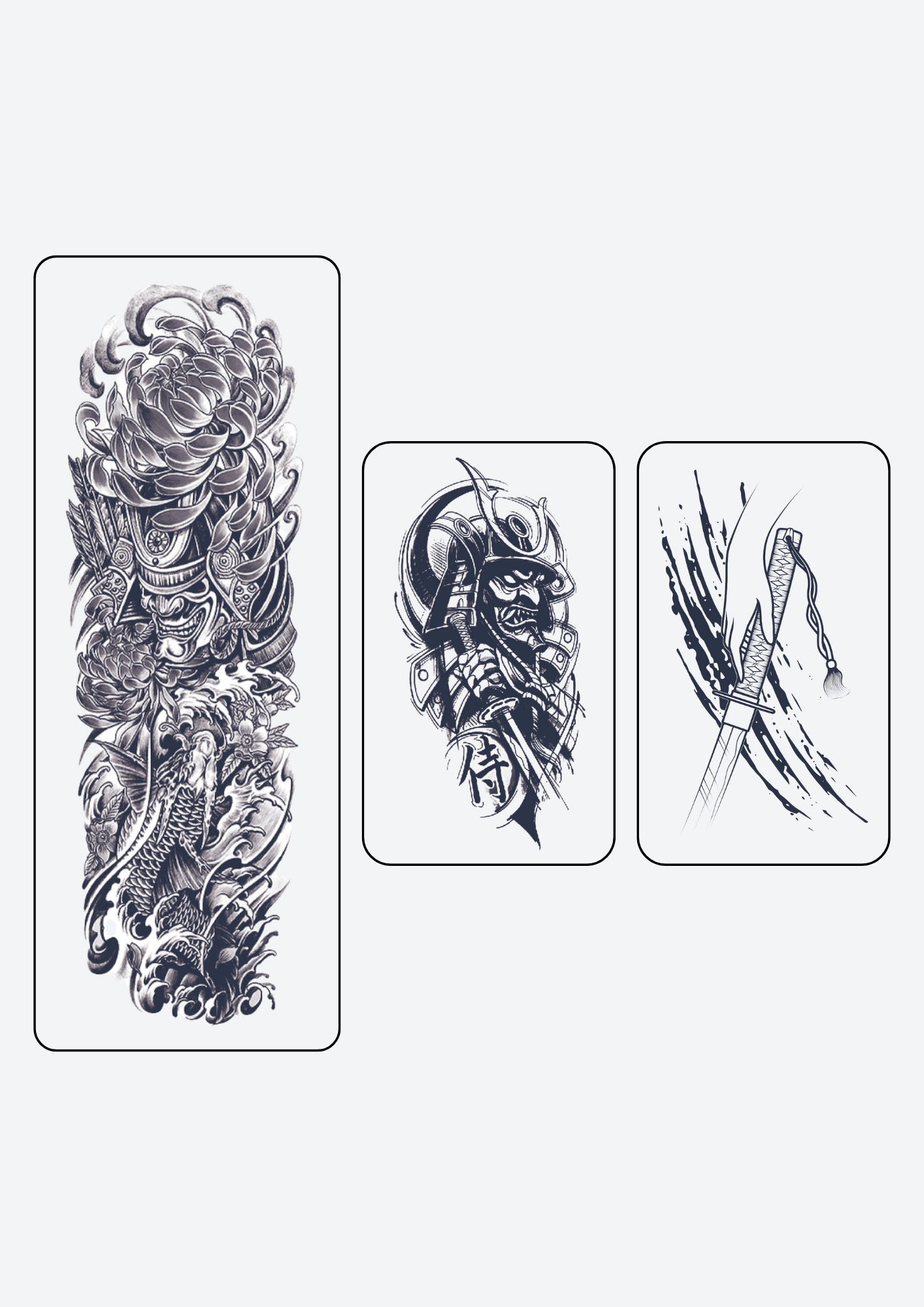 Unleash your inner warrior with our Samurai Pack! This EZINK temporary tattoo pack features two 4x7 inch tattoos and a 7x19 inch sleeve, all with stunning Samurai themed designs. Perfect for adding a touch of boldness and strength to your look. Channel the spirit of the samurai and make a statement with our Samurai Pack!