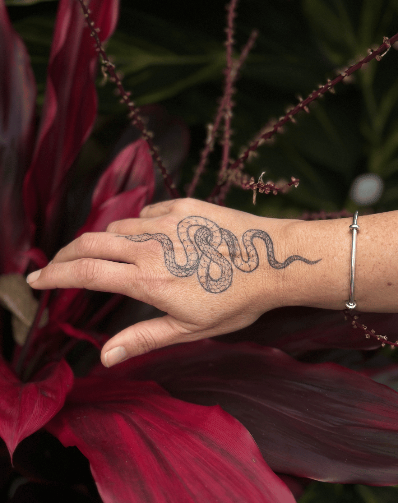Transform your look with our Scaly Snake temporary tattoo! This 3x6 inch design looks exactly like a real tattoo and lasts 1-2 weeks. No need to commit to permanent ink. Get the sleek and edgy look without the pain or commitment!