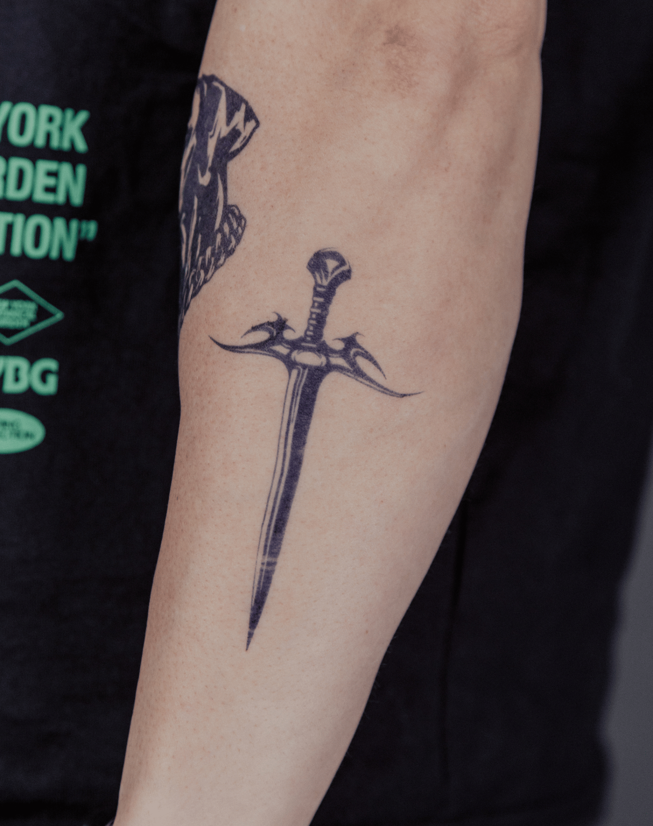Embrace the darkness with the Shadowfang temporary tattoo, a 2x4 inch design by @loz_tattooer. Featuring a sleek, deadly sword, this piece symbolizes power, mystery, and the sharp edge of fate. Lasting 1-2 weeks, it’s a bold statement of strength and intrigue.