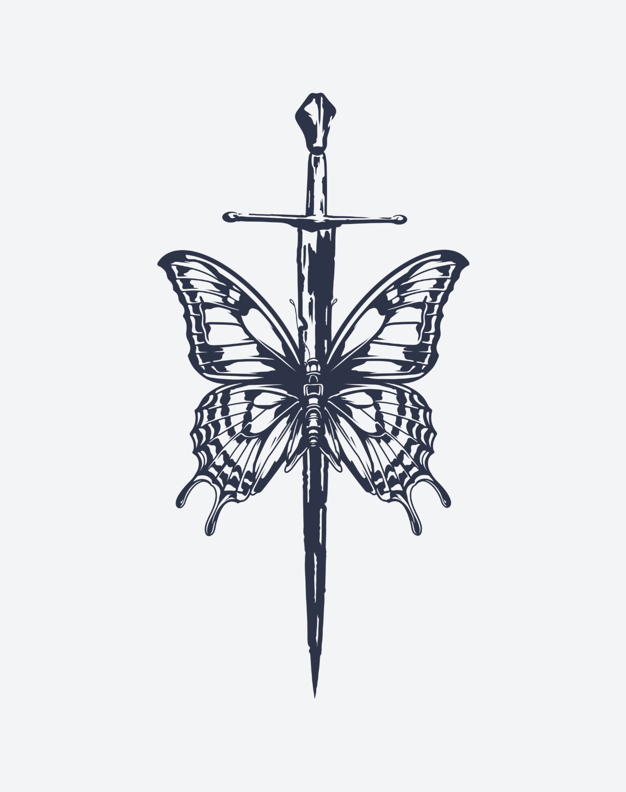 Transform into a majestic monarch with the Sword of the Monarch temporary tattoo! This stunning 3x6 inch EZINK design, featuring a sword and butterfly by @vladbaut, lasts 1-2 weeks. Channel your inner strength and grace with this unique and empowering accessory.