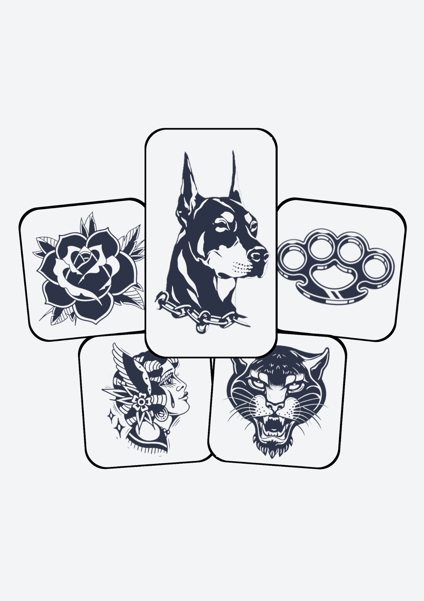 Let your style survive the summer with these 5 semi-permanent Traditional Blackwork tattoos! The pack includes intricate designs with classic patterns that are sure to add sophisticated character to any look. Dare to go bold with this eye-catching set that is sure to make waves.